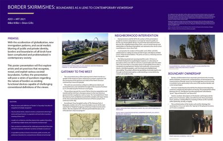 With the acceleration of globalization, new immigration patterns, and social media’s blurring of public and private identity, borders of all kinds have been complicated and problematized in contemporary society. This poster presentation will explore artists, architects, and social actors that reveal and exploit various historical or extant boundaries. The presentation will pose questions regarding the nature of borders as existing functional devices capable of challenging conventional definitions of viewership.